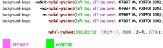 | 開始色にピンク、 集力色にグリーンを配置しました。 |
