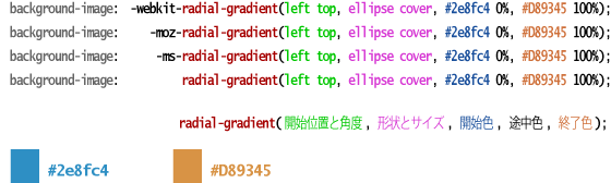 background-image: -webkit-radial-gradient(left top, ellipse cover, #2e8fc4 0%, #D89345 100%);